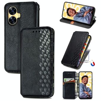 Για Realme C55 Cubic Grid Πιεσμένο μαγνητική δερμάτινη θήκη τηλεφώνου (Μαύρο)