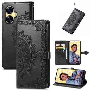 Για Realme C55 Mandala λουλούδι ανάγλυφο δερμάτινη θήκη τηλεφώνου (Μαύρο)