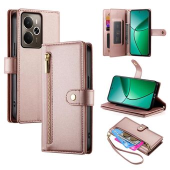 For Realme 14 / Realme P3 5G Nine Card-slot Zipper Wallet Bag Leather Phone Case(Pink)