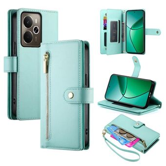 For Realme 14 / Realme P3 5G Nine Card-slot Zipper Wallet Bag Leather Phone Case(Mint Green)