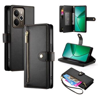 For Realme 14 / Realme P3 5G Nine Card-slot Zipper Wallet Bag Leather Phone Case(Black)