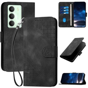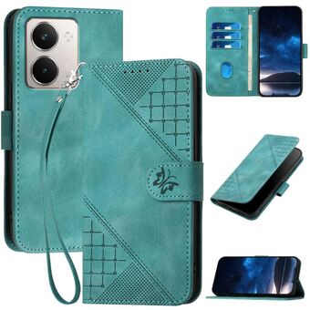 For Realme 14x Global Grid Butterfly Embossed Pattern Leather Phone Case with Lanyard(Black)
