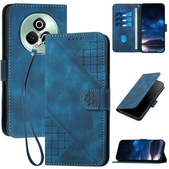For Realme P3 Pro Grid Butterfly Embossed Pattern Leather Phone Case with Lanyard(Dark Blue)