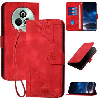 For Realme P3 Pro Grid Butterfly Embossed Pattern Leather Phone Case with Lanyard(Red)