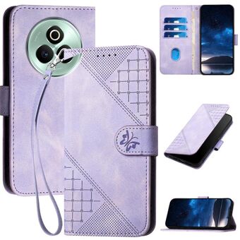 For Realme 14 Pro+ Grid Butterfly Embossed Pattern Leather Phone Case with Lanyard(Light Purple)