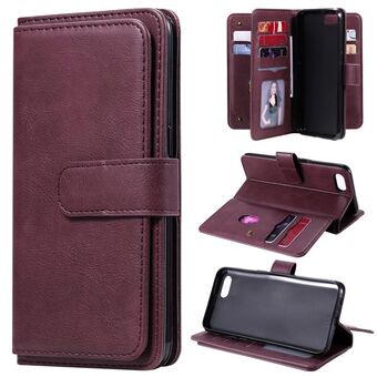 For OPPO A1k / Realme C2 Multifunctional Magnetic Copper Buckle Horizontal Flip Solid Color Leather Case with 10 Card Slots & Wallet & Holder & Photo Frame(Wine Red)