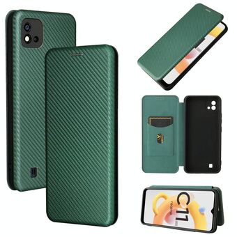 For OPPO Realme C11 2021 Carbon Fiber Texture Horizontal Flip TPU + PC + PU Leather Case with Card Slot(Green)