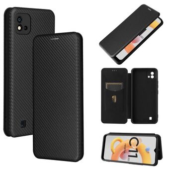 For OPPO Realme C11 2021 Carbon Fiber Texture Horizontal Flip TPU + PC + PU Leather Case with Card Slot(Black)