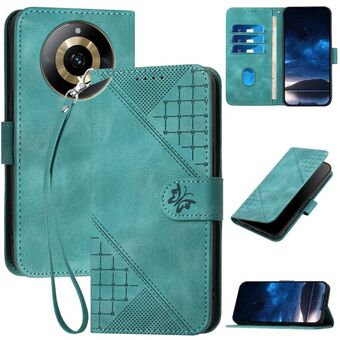 For Realme 11 5G Global Grid Butterfly Embossed Pattern Leather Phone Case with Lanyard(Black)