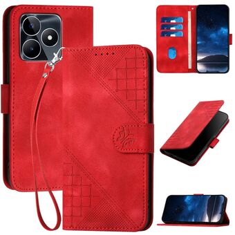 For Realme 11 5G Global Grid Butterfly Embossed Pattern Leather Phone Case with Lanyard(Red)