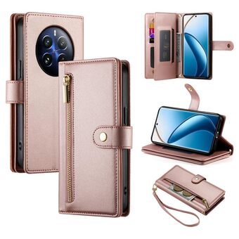For Realme 12 5G Nine Card-slot Zipper Wallet Bag Leather Phone Case(Pink)