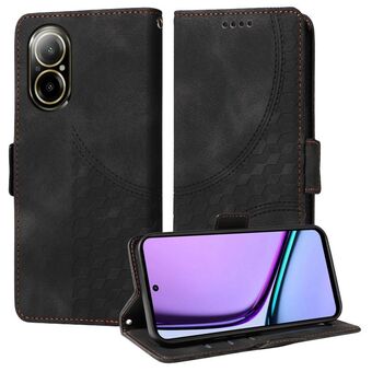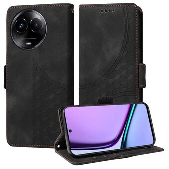 For Realme 12 Lite 4G Global Embossed Rhombus Starry Leather Phone Case(Black)