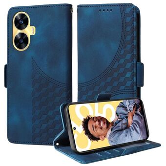 For Realme C55 Embossed Rhombus Starry Leather Phone Case(Blue)