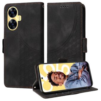 For Realme C55 Embossed Rhombus Starry Leather Phone Case(Black)