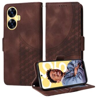 For Realme C55 Embossed Rhombus Starry Leather Phone Case(Brown)