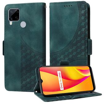 For Realme C15 / C12 Embossed Rhombus Starry Leather Phone Case(Green)
