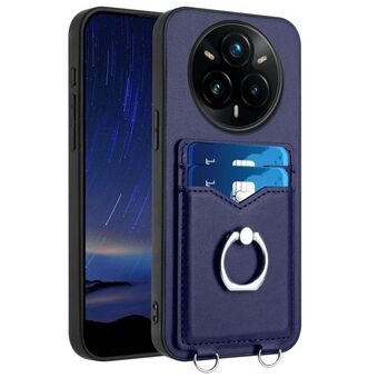 For Realme 14 Pro+ R20 Ring Card Holder Phone Case(Blue)