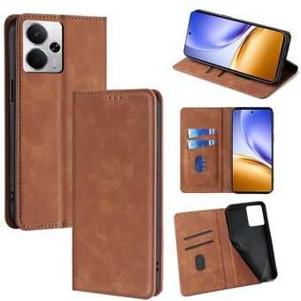 For Realme 14 5G Global Skin Feel Magnetic Leather Phone Case(Light Brown)