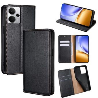 For Realme 14 5G Global Gloss Oil Solid Color Magnetic Leather Phone Case(Black)
