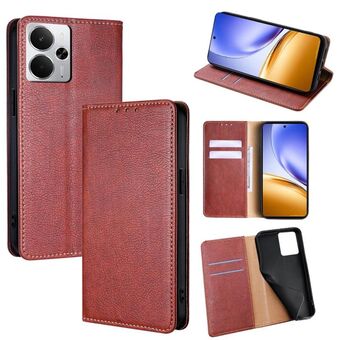 For Realme 14 5G Global Gloss Oil Solid Color Magnetic Leather Phone Case(Brown)