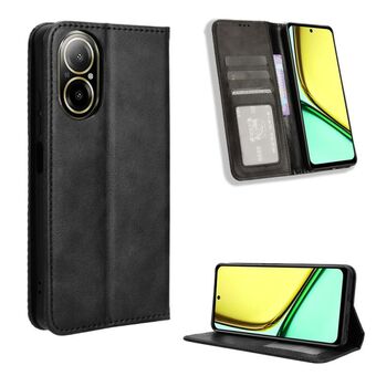 For Realme C65 4G Magnetic Buckle Retro Texture Leather Phone Case(Black)