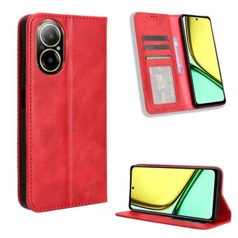 For Realme C65 4G Magnetic Buckle Retro Texture Leather Phone Case(Red)