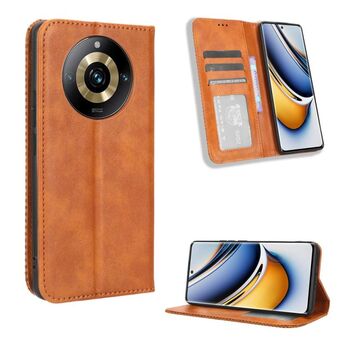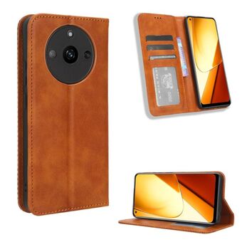 For Realme 11 5G Magnetic Buckle Retro Texture Leather Phone Case(Brown)