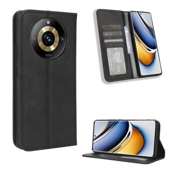 For Realme 11 Pro / 11 Pro+ Magnetic Buckle Retro Texture Leather Phone Case(Black)