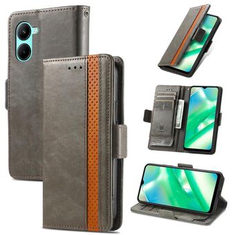For Realme C33 CaseNeo Splicing Dual Magnetic Buckle Leather Phone Case(Gray)