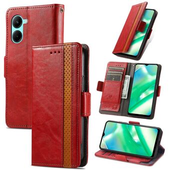 For Realme C33 CaseNeo Splicing Dual Magnetic Buckle Leather Phone Case(Red)