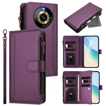 For Realme Narzo 60 Pro Global Magnetic Closure 9 Card Slots Zipper Leather Case with Hand Strap(Purple)