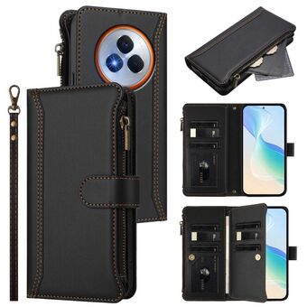 For Realme Narzo 80X Magnetic Closure 9 Card Slots Zipper Leather Case with Hand Strap(Black)