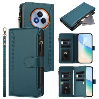 For Realme Narzo 80X Magnetic Closure 9 Card Slots Zipper Leather Case with Hand Strap(Dark Green)