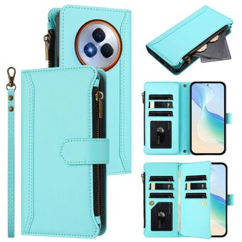 For Realme Narzo 80X Magnetic Closure 9 Card Slots Zipper Leather Case with Hand Strap(Turquoise)