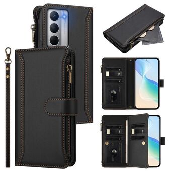 For Realme Narzo 80 Pro Magnetic Closure 9 Card Slots Zipper Leather Case with Hand Strap(Black)