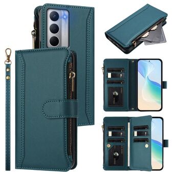For Realme Narzo 80 Pro Magnetic Closure 9 Card Slots Zipper Leather Case with Hand Strap(Mint Green)