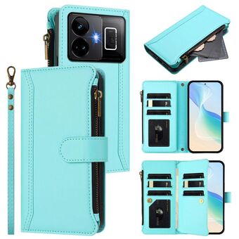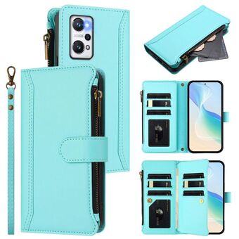 For Realme GT NEO 3T Magnetic Closure 9 Card Slots Zipper Leather Case with Hand Strap(Mint Green)