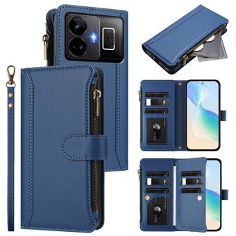 For Realme GT3 5G / GT Neo 5 240W Magnetic Closure 9 Card Slots Zipper Leather Case with Hand Strap(Dark Blue)