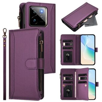 For Realme GT7 Pro 5G / GT7 Pro Racing Magnetic Closure 9 Card Slots Zipper Leather Case with Hand Strap(Purple)