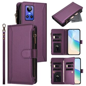 For Realme GT Neo3 Magnetic Closure 9 Card Slots Zipper Leather Case with Hand Strap(Purple)