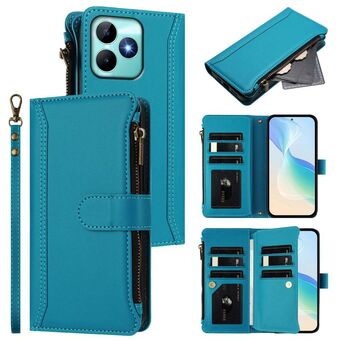 For Realme C53 4G Global / C51 4G Magnetic Closure 9 Card Slots Zipper Leather Case with Hand Strap(Turquoise)