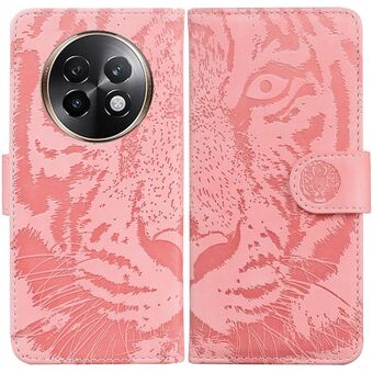 For Realme 13+ Global Tiger Embossing Pattern Flip Leather Phone Case(Pink)