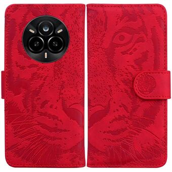 For Realme 13+ Global Tiger Embossing Pattern Flip Leather Phone Case(Red)