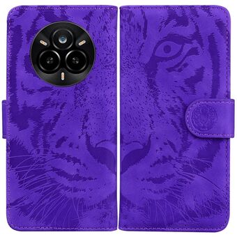 For Realme 13+ Global Tiger Embossing Pattern Flip Leather Phone Case(Purple)