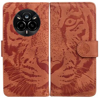 For Realme 13+ Global Tiger Embossing Pattern Flip Leather Phone Case(Brown)
