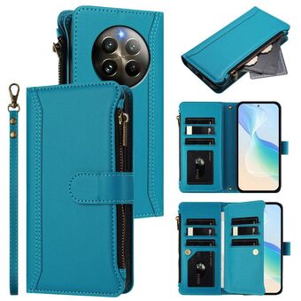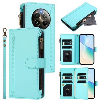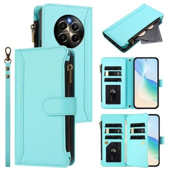 For Realme 13 4G Global / P1 5G Global Magnetic Closure 9 Card Slots Zipper Leather Case with Hand Strap(Turquoise)