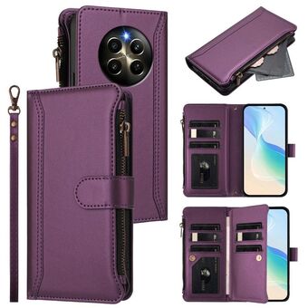 For Realme 13 4G Global / P1 5G Global Magnetic Closure 9 Card Slots Zipper Leather Case with Hand Strap(Purple)