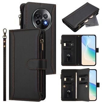 For Realme 13+ 5G Global Magnetic Closure 9 Card Slots Zipper Leather Case with Hand Strap(Black)
