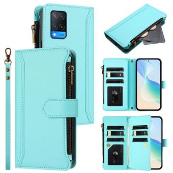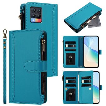 For Realme 8 / 8 Pro Magnetic Closure 9 Card Slots Zipper Leather Case with Hand Strap(Turquoise)