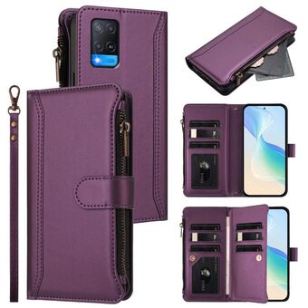 For Realme 8 / 8 Pro Magnetic Closure 9 Card Slots Zipper Leather Case with Hand Strap(Purple)